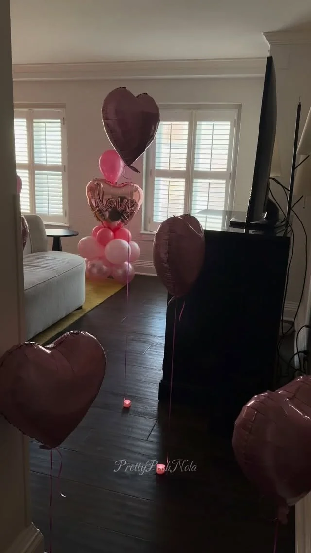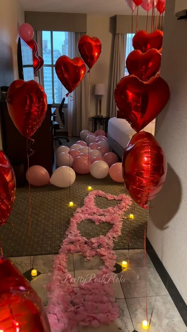 Pretty Posh Nola designs custom setups for proposals, hotel stays, bachelorette trips, and intimate celebrations — creating meaningful moments without the stress of planning or decorating.
